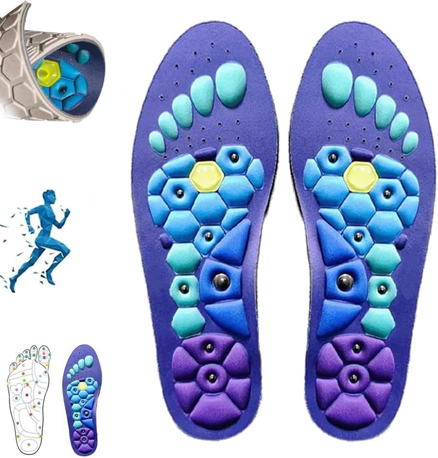 These insoles combine powerful Magnetic Therapy with targeted Acupressure Nodes strategically placed to stimulate key reflexology pressure points on your feet