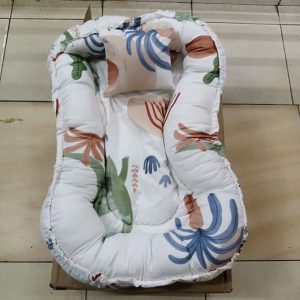 Comfortable foldable baby nest designed for co-sleeping, includes a soft pillow and breathable fabric for safety and comfort.